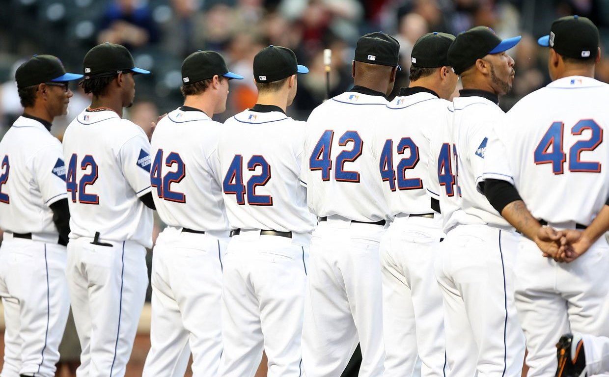 featured image: Getty (showing MLB players wearing Robinson’s number and . . . wait for it . . . standing for the national anthem)